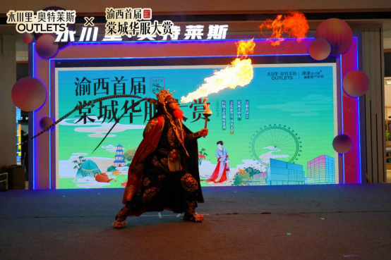 “永川里”中庭举办的国风舞台秀,既有国风舞蹈表演,又有传统川剧的变脸、吐火表演,赢得了现场阵阵掌声和喝彩声。